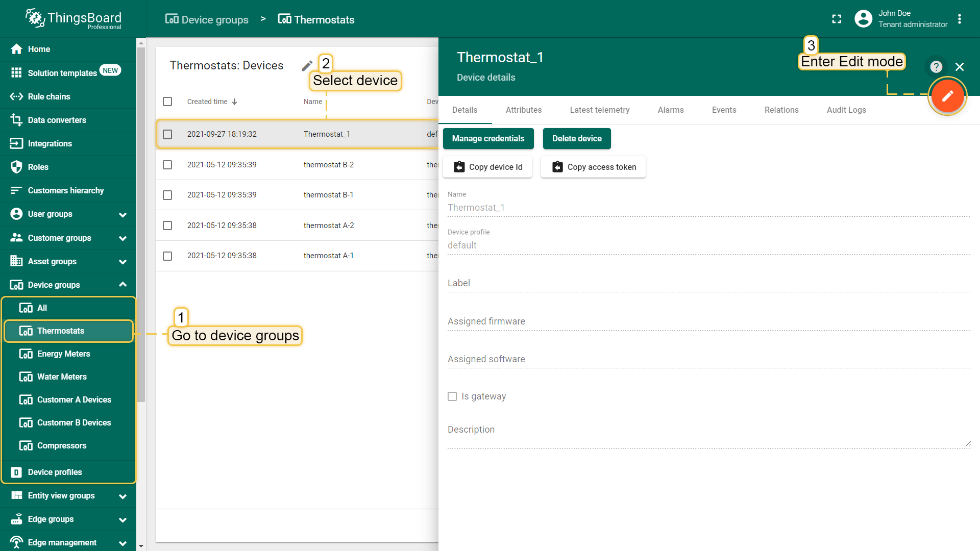 - Device profile configuring
