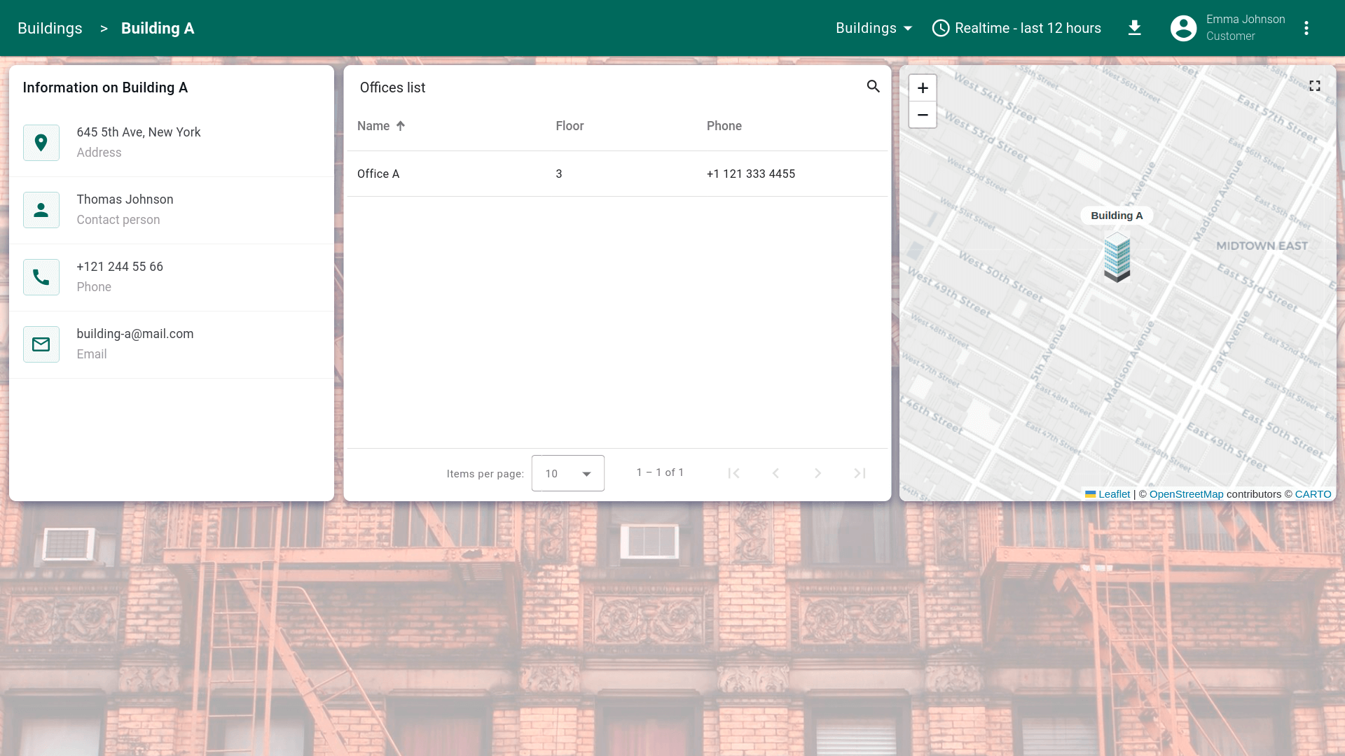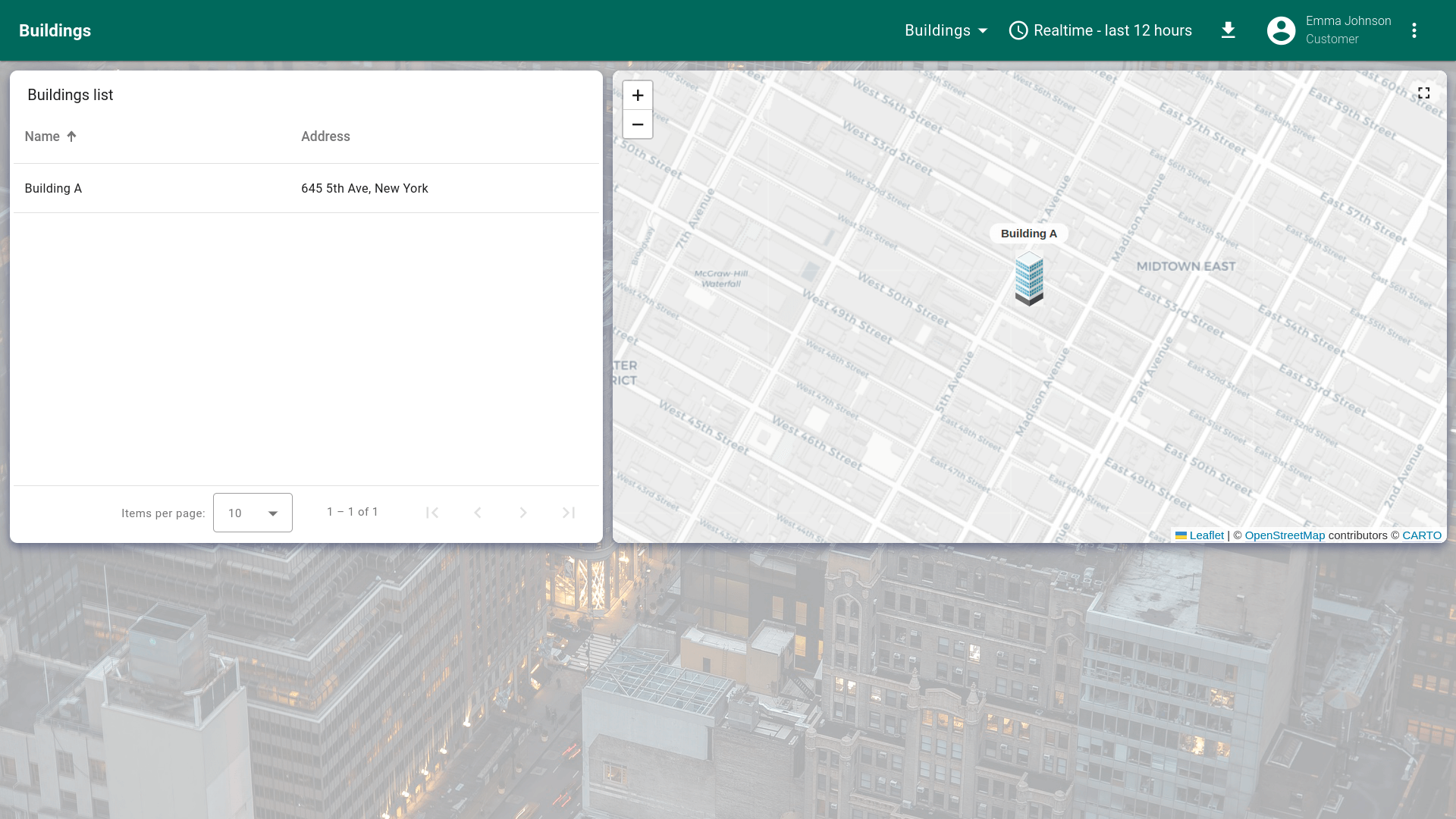 The dashboard will open, displaying only the building where your office is located — Building A. Navigate through the dashboard to ensure that your user has access only to the data you have granted them access to.