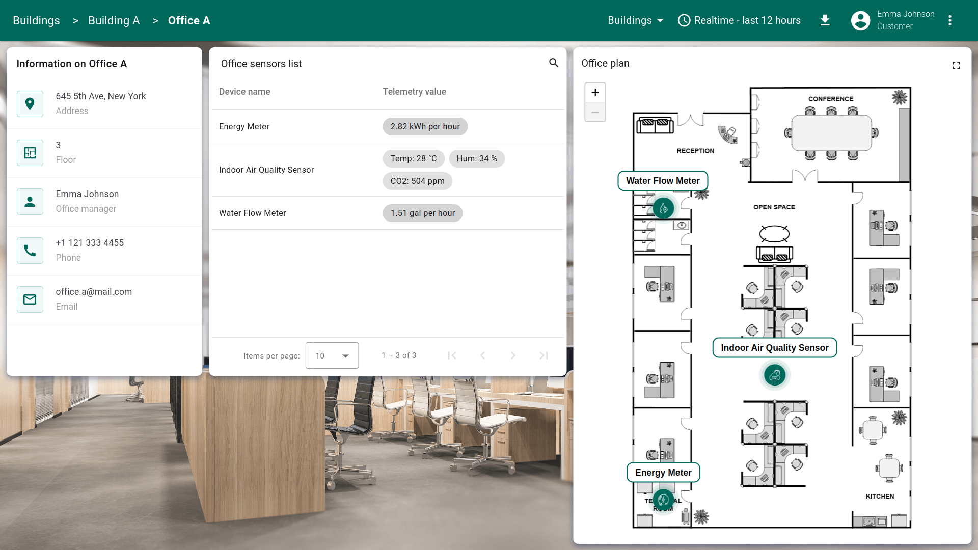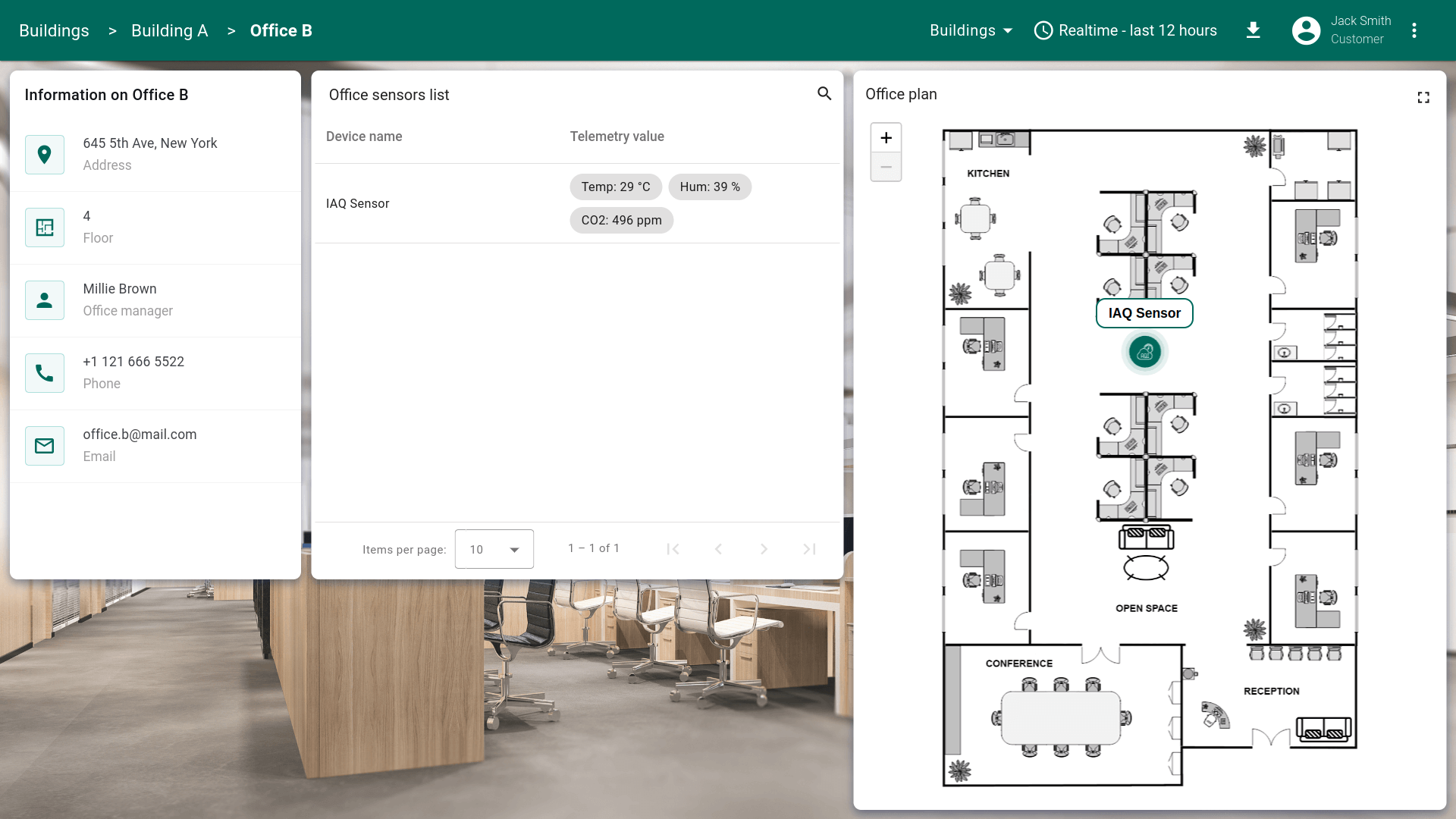 Similarly, activate the user of Customer B. They should have access to Office B in Building A and the data from the IAQ Sensor located inside the Office B.